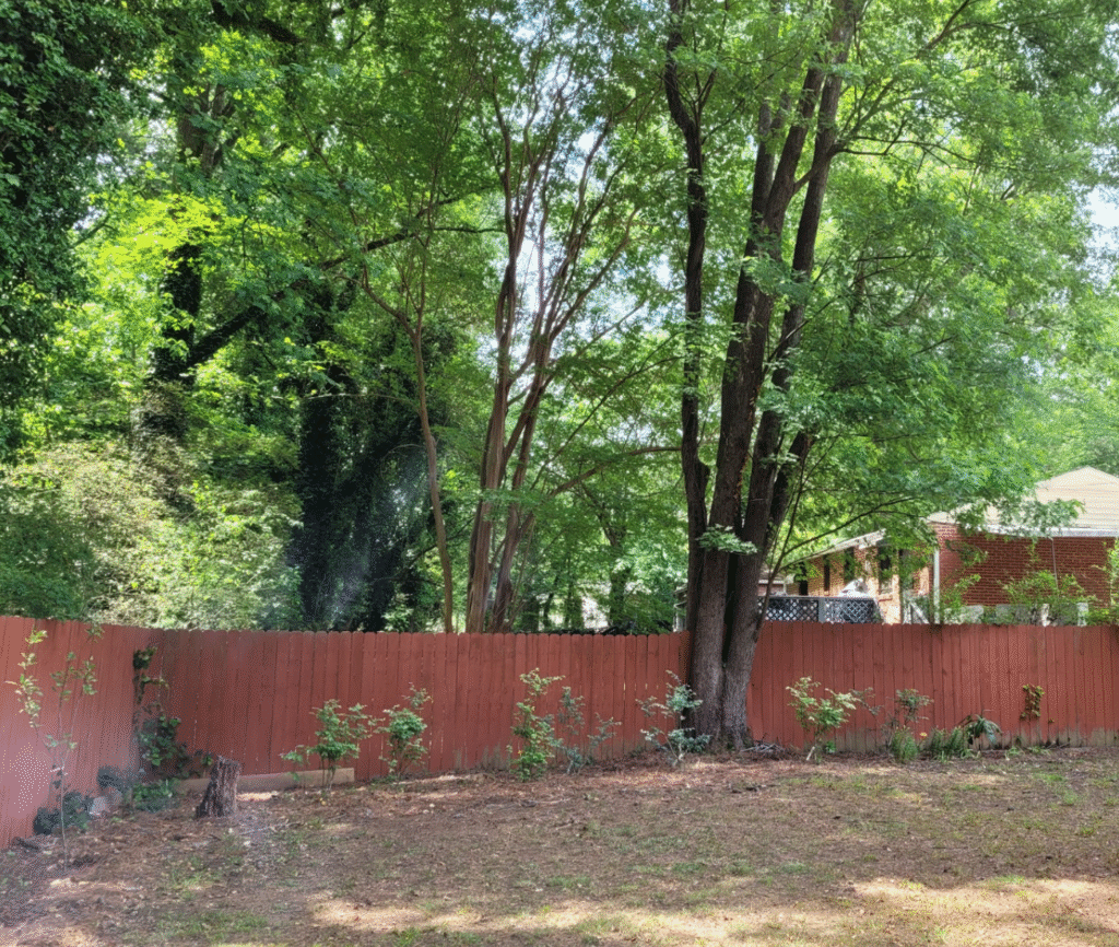 The very beginnings of a food forest. We planted native fruit trees along this client’s fence line.