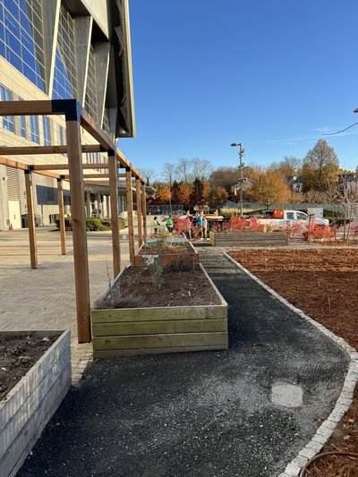 At Mercedes-Benz Stadium, we created a series of eco-friendly outdoor spaces designed to combine function, beauty, and sustainability. Our team installed custom pergolas and welcoming hangout areas in the VIP section, integrating natural materials and thoughtful design. Walkways were constructed to connect the spaces seamlessly, bordered with edible gardens that highlight the connection between people and place.